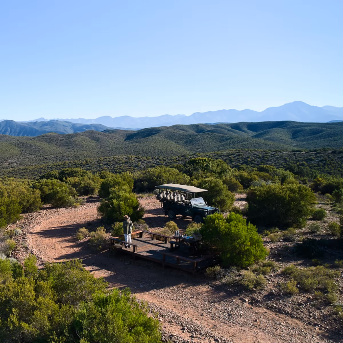 During our bush safaris ( game drives ), you can expect to experience true Karoo vegetation from our open game viewing vehicles. Our wide range of animals includes Hippo, Giraffe, Eland, Zebra, Buffalo, Springbok, and much more. The duration of our bush safaris is ± 2 hours. About midway through the safari, there is a refreshment break at one of our scenic lookout points. These offer 360° panoramic views of the area as well as the Swartberg Mountains.