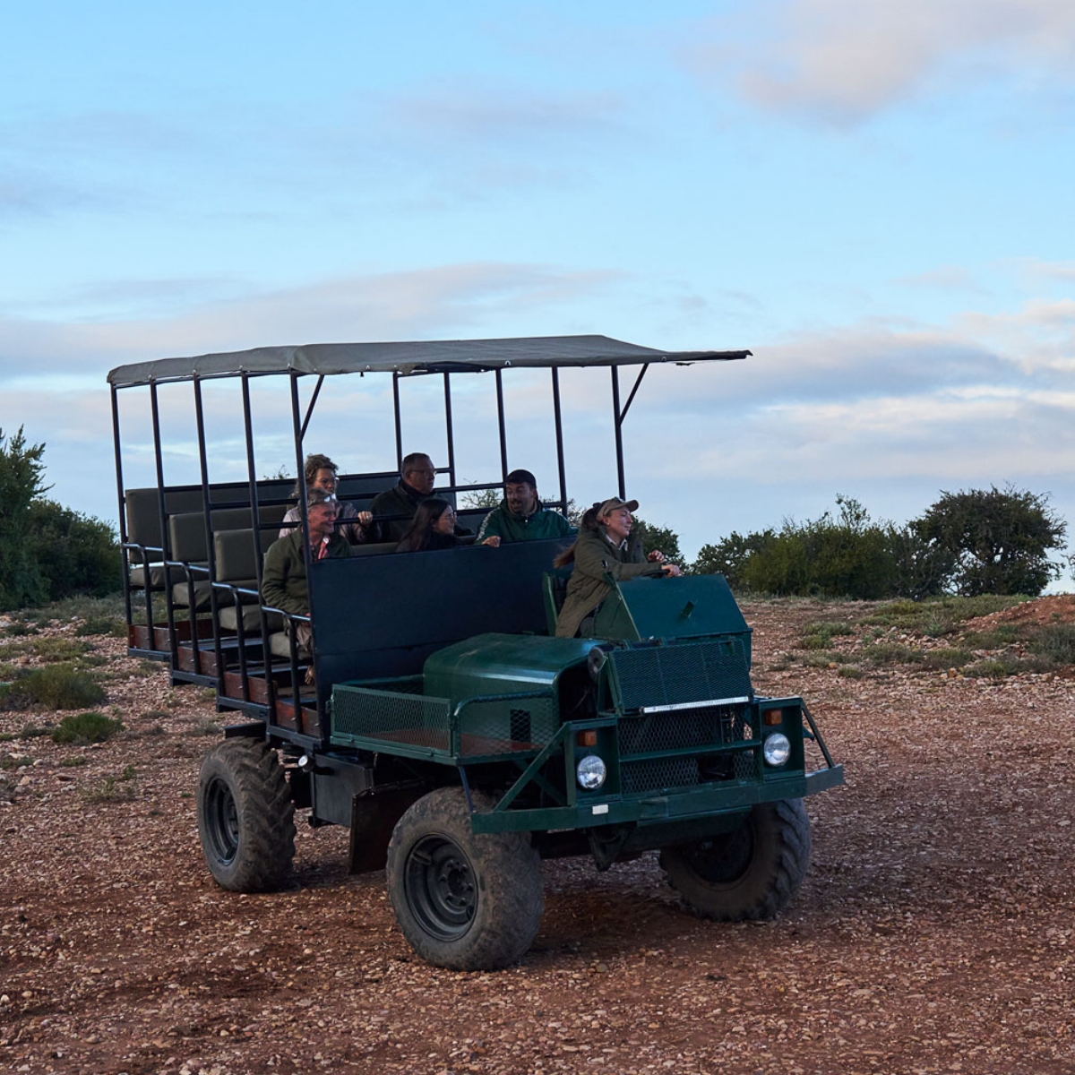 The Meerkat Safaris at Buffelsdrift Game Lodge will bring you up close to these amazing animals. A trained ranger will meet our guests in the Lookout Lounge, where they will enjoy a warm cup of coffee and rusks, before heading to the Safari vehicle by which they will be taken to the Meerkat burrows. On the way to the burrows guests are usually lucky to spot some of the 22 species of animals on the reserve. As there are dangerous animals like Buffalo and Hippo on the reserve, the guests remain on the vehicle while waiting for the Meerkats to emerge at the break of dawn. The ranger will educate the guests on all the interesting facts and behaviour throughout the experience.